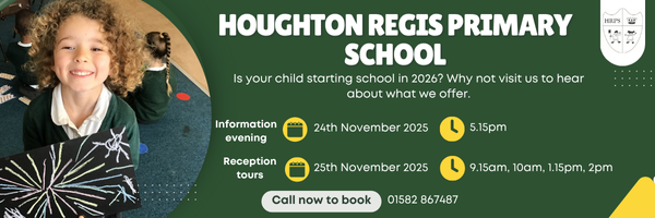 Houghton Regis Primary School is a warm, welcoming and growing school, including a Nursery, with approximately 400 children on roll. At Houghton Regis Primary School, we believe that every child matters every day and our priority is for our pupils to love learning through an exceptional curriculum which is exciting and constantly developing.